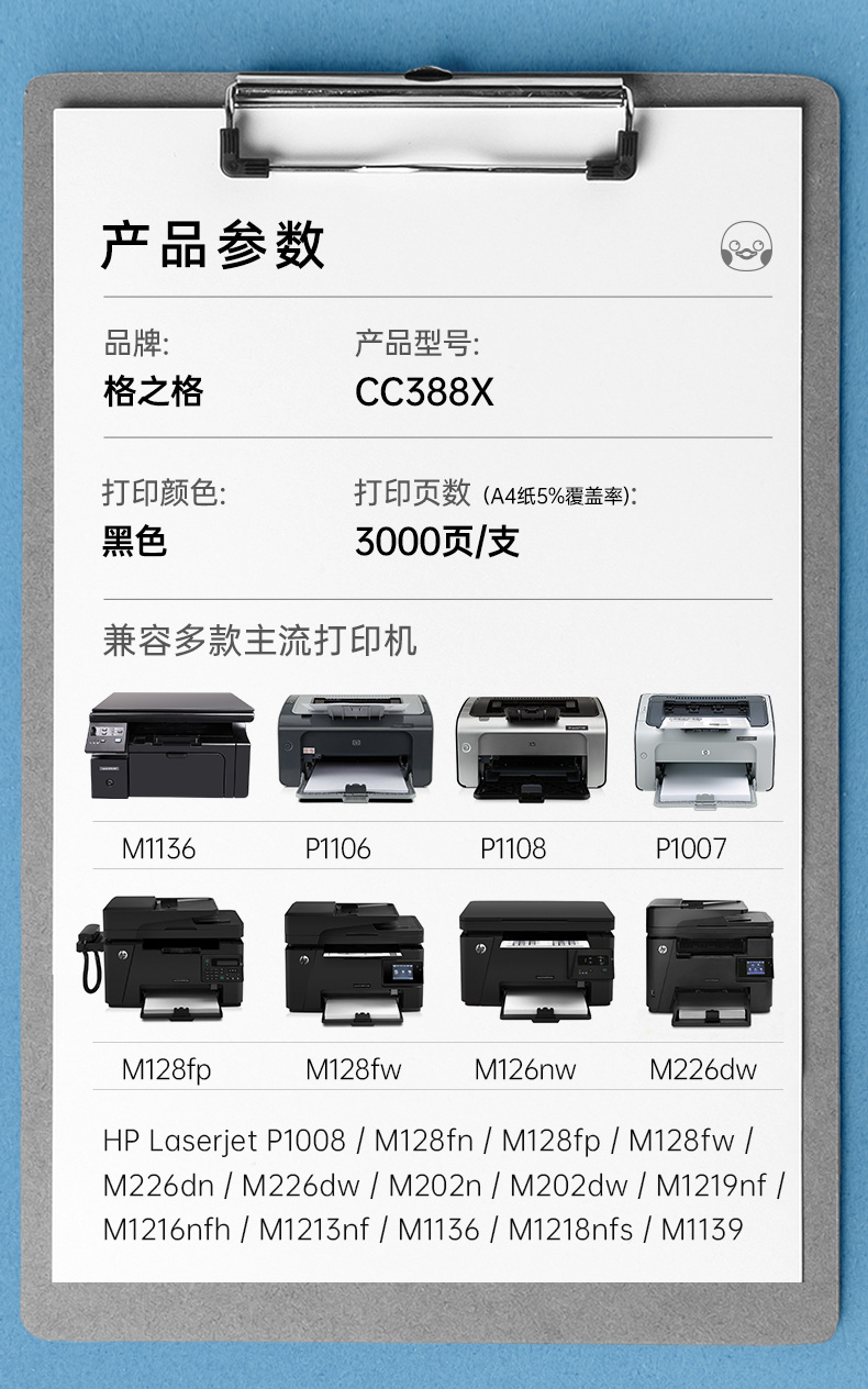 格之格88a硒鼓大容量 适用惠普cc388a m1136硒鼓 hp m126a p1108 p1007 p1008 m128fn打印机p1106墨盒